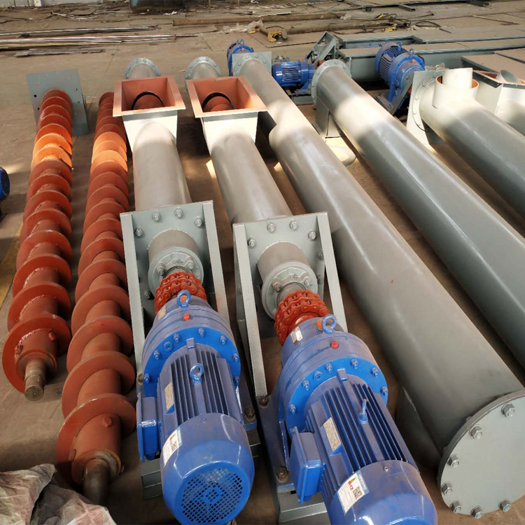 螺旋輸送機使用中怎樣添加潤滑油:1)減速器潤滑:TY型減速器用中極壓齒輪油N220(或VG220、Mobi1630)ZSY型和LZJ型減速器選用90號~150號工業(yè)齒輪油(SY1172—77S)或中性極壓齒輪油。新減速器使用20天后,須_換新油。對于長期連續(xù)工作的減速器須三個月?lián)Q油一次,對于每天工作時間不超8小時的減速器須六個月?lián)Q油一次。若使用中發(fā)現(xiàn)溫升超60℃或油溫超85℃須換潤滑油后再用。2)頭、尾軸承箱潤滑:選用鋰基潤滑脂ZL-l(SY-1412-75)一般一個月加注一次,注入量約占軸承箱內(nèi)空間的2/3為宜。3)吊軸承潤滑:選用50號-120號工業(yè)齒輪油(SY1172--80)對每個吊軸承沒加注一次。