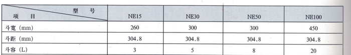 NE斗式提升機料斗注: 1. 表中斗容為計算斗容,輸送量按填充系數(shù)0. 6計算得出。 2. 斗提機料斗用途: 淺料斗:輸送潮濕、易結(jié)塊、難拋出的物料,如濕沙、濕煤等。 深料斗:輸送干燥的、松散的、易拋出的物料,如水泥、煤塊、碎石等。
