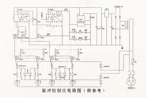 按中間的按鍵是開始設(shè)定參數(shù),左右兩個(gè)按鍵換頁,上下兩個(gè)按鍵修改參數(shù),換到確定頁按中間的按鍵確定或到取消頁面取消。正常顯示按左鍵進(jìn)入手動(dòng),左按鍵是氣缸手動(dòng)(沒氣缸不用),下按鍵是脈沖閥手動(dòng),右按鍵是脈沖閥移位,上按鍵是卸灰手動(dòng)。注意:1、P1:提升閥數(shù),P2:脈沖閥數(shù)、兩項(xiàng)為互鎖參數(shù),以_所設(shè)定的輸出點(diǎn)數(shù)不大于輸出路數(shù)。分室除塵器(有提升閥)要先設(shè)定脈沖閥數(shù)一個(gè)室(組)有幾個(gè)脈沖閥設(shè)置為幾個(gè)。2、P7:周期間隔,P9卸灰間隔,當(dāng)不需要時(shí)請(qǐng)?jiān)O(shè)置為0,以前閉對(duì)應(yīng)功能。3、P8:卸灰時(shí)長,卸灰時(shí)長為獨(dú)立計(jì)時(shí)器,卸灰計(jì)時(shí)與周期間隔等互不影響。
