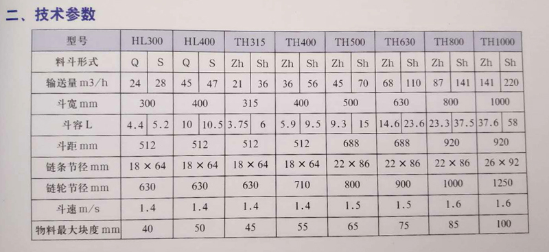 注:1. 表中斗容為計(jì)算斗容,輸送量按填充系數(shù)0.6計(jì)算得出。